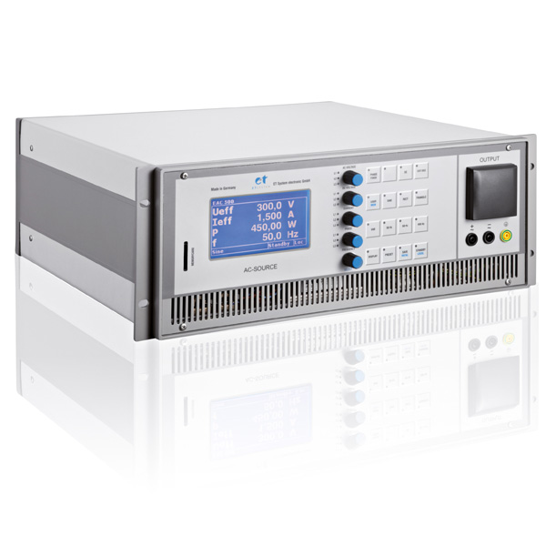 Die elektronisch regelbare AC–Quelle EAC–S verfügen über eine Lineare Endstufe mit sauberem Ausgang bei Pmax: 0,1%. Die Geräte werden verwendet um Spannungen, Ströme, Frequenzen und Kurvenformen unabhängig vom Netz 1–phasig nachzubilden.