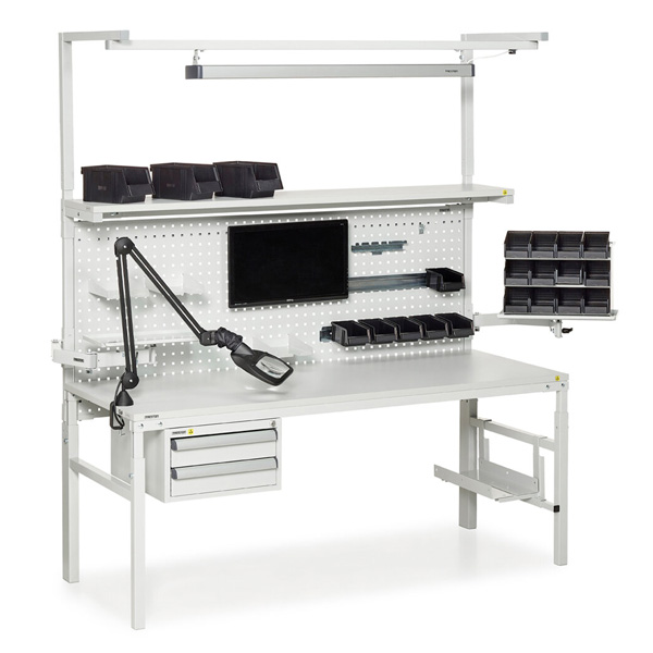 Mit seinem umfangreichen Zubehörprogramm erfüllt er sämtliche Anforderungen an einen professionellen Arbeitstisch.