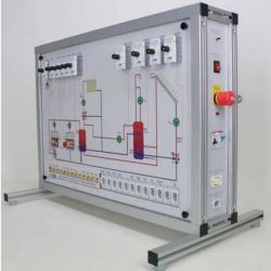 Das Schulungsmodell erlaubt die Inbetriebnahme von Heizungsreglern an unterschiedlichen Anlagenschemata: