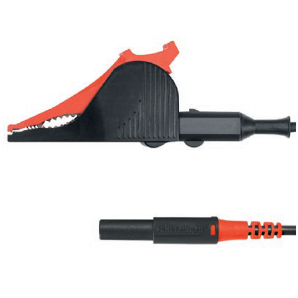 1 Koaxial-Sicherheits-Federkorbstecker, konfektioniert an PVC-UL-Steuerleitung und Sicherheits-Kelvinklemme