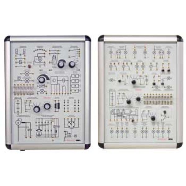 Gerätebeschreibung:Das Verständnis und die Interpretation moderner Kfz-Stromlauf- bzw. Schaltpläne wird immer schwieriger. Die logische Zuordnung und die Funktion des jeweiligen Bauelementes im Rahmen der Gesamtelektrik ist nur durch fachkundiges Lesen des Schaltplanes erkennbar.Der Schüler muss in die Lage versetzt werden, Schaltpläne, bestehend aus einer Vielzahl von Einzelsymbolen, zu verstehen und auf das Fahrzeug übertragen zu können. Die Hauptaufgabe der Schülertrainer besteht somit darin, einen vorgegebenen Schaltplan (oder einen Plan, den der Schüler vorher gezeichnet hat) auf der Steckplatte des Schülertrainers zu einer arbeitsfähigen Schaltung zu verkabeln. Es wird die Abstraktionsfähigkeit des Schülers - vom Schaltsymbol zum Verhalten des realen Bauteiles - trainiert.´Auf den Steckplatten der Schülertrainer finden Sie die Schaltsymbole der gebräuchlichsten Kfz-Elektrikbauteile. Die einzelnen Verbraucher werden durch sich analog verhaltende Elektronikbaugruppen simuliert. Alle Komponenten entsprechen in ihrer Funktion und in der notwendigen Beschaltung der Originalteilen. Die Verbindungen erfolgen durch Steckkabel und sind gegen Kurzschluss gesichert. Zum Training der Fehlersuche an den schon bestehenden Schaltungen können bei beiden Schülertrainern 10 verschiedene Fehler gezielt eingegeben werden.Der besseren Übersichtlichkeit wegen ist der Gesamtschaltplan auf 2 Schülertrainer, EL 1 und EL 2, aufgeteilt.Schülertrainer EL1:Der Trainer beinhaltet die Systeme Zündung, Anlasser, Lichtmaschine, Wischer, Horn, Vorglühanlage, Motorkontrolle, Ladung, Öldruck sowie abgestimmter Kabelsatz und Fehlereingabemöglichkeit.Schülertrainer EL2:Dieser Trainer beinhaltet die Beleuchtungs- und Signalanlage einschließlich der Relaisschaltung für z. B. Zusatzscheinwerfer sowie abgestimmter Kabelsatz und Fehlereingabemöglichkeit.