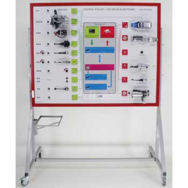 Gerätebeschreibung:Der fahrbare Funktionsstand ´Digitale Steuer- und Regelungstechnik´ DSRE ermöglicht es, die grundsätzlichen Abläufe der digitalen Signalverarbeitung mittels Analogiemodellen aus dem Bereich der Kfz-Technik zu zeigen. Abstrakte Begriffe aus der Regelungstechnik (P-I-D Teil, Regleroptimierung, Führungsverhalten usw.) werden an leicht fassbaren Beispielen verdeutlicht. Versuchsabläufe nach dem Motto "was geschieht, wenn" vermitteln den notwendigen Wissenshintergrund zum Verständnis steuer- und regelungstechnischer Vorgänge. Die Funktion von Sensoren und Stellgliedern, als Ein- und Ausgabeelemente der Regelungstechnik, werden in anschaulichen Versuchen untersucht und erklärt.Das umfangreiche PC-Programm, in Verbindung mit DSRE-Schulungsstand, erlaubt ein interaktives Erarbeiten der entsprechenden Wissensinhalte.