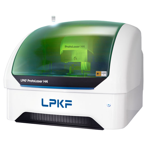Das Bildverarbeitungssystem, sechs Werkzeugpositionen sowie zahlreiche softwaredefinierte Laserwerkzeuge und eine umfangreiche Bibliothek vordefinierter Materialien ermöglichen den Betrieb des LPKF ProtoLaser H4 nahezu ohne Benutzereingriff.