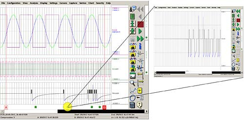 Unabhängig davon, ob Ihr Test 100 Millisekunden oder 100 Stunden läuft, wird der TMX keine Störung verpassen. Mit seiner dedizierten, 1 TByte großen Festplatte für die Datenerfassung ist der TMX ideal für Langzeittrend- und Hochgeschwindigkeitsereigniserkennung. Die leistungsstarke Embedded Scope Capture-Funktion und die intelligente Triggerung sorgen für eine langsame Trenddarstellung, während gleichzeitig hochfrequente Signale, zeitsynchronisierte Ereignisse überwacht und gespeichert werden.